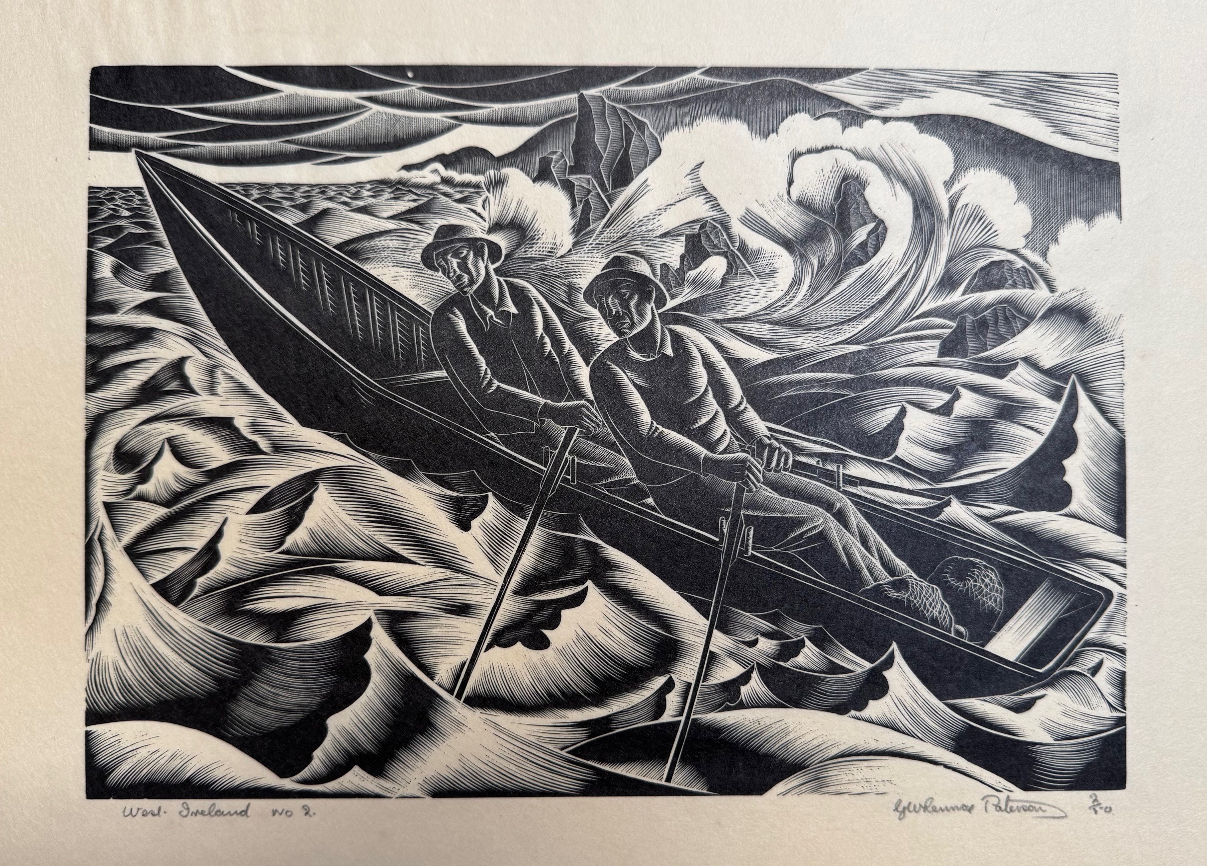 Paterson’s artistic oeuvre encompassed painting and wood engraving, often reflecting the landscapes and cultural motifs of Scotland. Notable works include Study of a Head (1938) and Crest for Glasgow University, both wood engravings that showcase his technical proficiency and artistic vision.