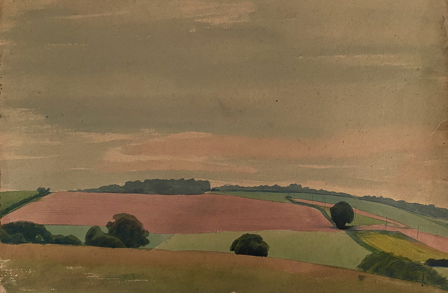 A reclusive figure whose work has remained largely unseen, Finney studied under Eric Gill before winning a scholarship to the Royal College of Art in the early 1920’s; his closest friends there were Charles Mahoney,(1903-1968), Gerald Ososki (1903-1981) and Barnett Freedman (1901-1958). Finney had the good fortune to attend the RCA as part of a golden generation, many of whom went on to become some of Britain’s best loved artists (amongst them Ravilious, Bawden, Hepworth, Moore, Dunbar, Sorrell, and Piper). After a travelling scholarship to Rome, in 1929, Finney returned to become a teacher at Chelsea School of Art – working alongside Henry Moore who was in charge of the Sculpture Department and Graham Sutherland, the Department of Design.
