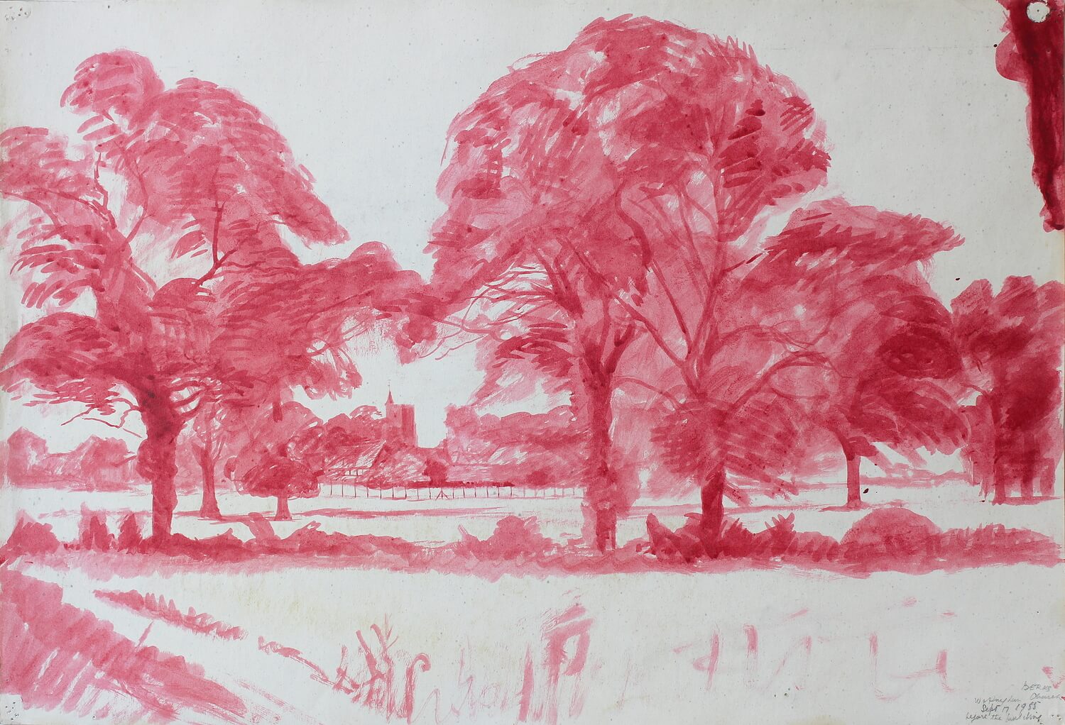 Equally versatile when working on canvas or paper his compositions are characterised by a distinctive use of colour and design, similar in many ways to that of Ravilous, through which everyday scenes and topography are transformed through an underlying sense of pattern. Finney’s work is saturated with a the aesthetic now much associated with the mid-century Recording Britain project.