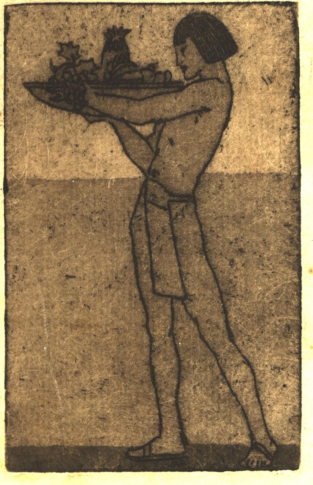 Unique etching, 3 1/2 x 2 1/2 in. (9 x 6 cm.)