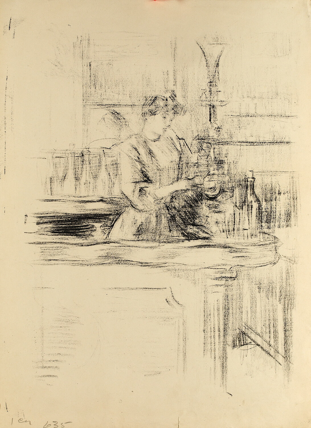 Although born in Wales, he was the son of the Marquis de Belleroche, of one of the most ancient French noble families who, being Huguenots, had fled to England in 1685. In 1871, following the death of his father, he moved back to Paris with his family. After he had finished school there, he studied at the studio of Carolus Duran, and spent long hours copying at the Paris museums. He soon became familiar with the leading painters and intellectuals of the day, and became a founder member of the Salon d’Automne, exhibiting alongside the Impressionists and associating with Emile Zola, Oscar Wilde, Albert Moore, Renoir, Degas, Helleu and Toulouse-Lautrec. Toulouse-Lautrec and Belleroche were exact contemporaries, who first met at the age of eighteen. Belleroche painted Toulouse-Lautrec’s portrait and shared with him a passion for the model Lili, who epitomised the Belle Epoch aesthetic of Toulouse-Lautrec’s most celebrated posters. Lili became Belleroche’s favourite model and mistress. In 1882 Belleroche also met the already acclaimed American painter John Singer Sargent, who recognised Belleroche’s talent and empathised with his free drawing style and sensitivity to light. They became life-long friends. Sargent’s handling of pastel was a great inspiration to Belleroche, while Belleroche’s sensitivity to tone and creation of form through the modeling of light exerted a strong influence on Sargent. In 1900, Belleroche became fascinated by the medium of lithography and by 1905 he was a leading figure in the field of lithographic portraiture. A.M. Hind, a former keeper of prints at the British Museum, described his works in lithography as “amongst the greatest achievements of the craft since its discovery.”