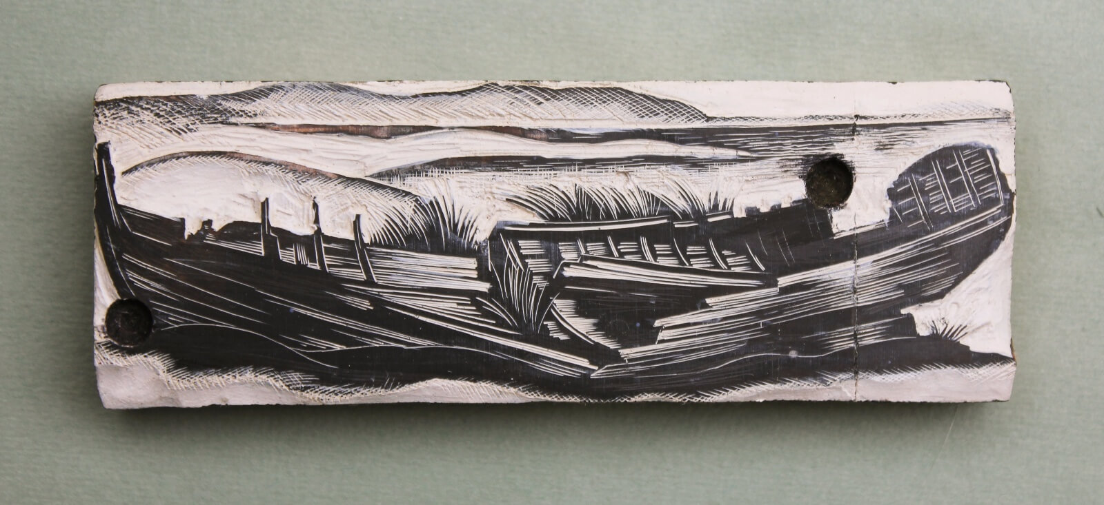 Wrecked Boat was originally printed in an edition of 75 as part of Where Land Meets Sea, (New York, Rhineheart & Co.) 1954, page 127