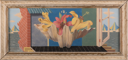 As a neo-Romantic painter, Leet was an exact contemporary of Carel Weight, with whom as a young man he shared a studio. He experimented with Surrealism, and was part of the tempera revival within Britain. Leet also served as official war artist in New Delhi, and it is tempting to see this still-life as a melding of his Surrealist tendencies with the Indian light and colour that he witnessed.